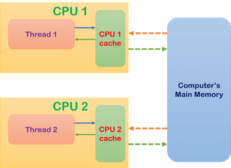 Volatile이라는 키워드를 사용해 Memory R/W에 대한 인스턴스의 원자성을 보장함으로써 해결한다.