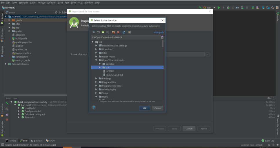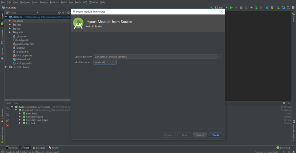 opencv라는 이름의 폴더가 추가된 것을 볼 수 있다.